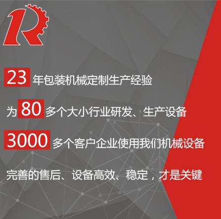 廣州市睿佳機械設(shè)備有限公司是國內(nèi)專業(yè)從事自動化包裝機械產(chǎn)品,集研發(fā)、生產(chǎn)、銷售、服務(wù)于一體的制造公司,已通過ISO9001:2008質(zhì)量體系認證,部分系列產(chǎn)品已通過歐盟CE認證。 經(jīng)過多年的發(fā)展,公司專業(yè)生產(chǎn):封尾機,灌裝機,旋蓋機,貼標(biāo)機,包裝機,輸送機,噴碼機,灌裝生產(chǎn)線等機械設(shè)備。企業(yè)以開發(fā)生產(chǎn)包裝機械和訂做特殊包裝機械為主,所生產(chǎn)的包裝機械在同行和客戶中都得到一致的贊賞,以高技術(shù)和穩(wěn)定的質(zhì)量遠銷東南亞和歐美。在國內(nèi),也成為多家知名藥廠、食品廠、化妝品廠指定使用產(chǎn)品。 睿佳機械:“想客戶之所想,急客戶之所急”既是睿佳對廣大客戶的承諾也是睿佳的宗旨,睿佳將與時代同步、銳意進取,以更優(yōu)質(zhì)的服務(wù)回報廣大客戶對睿佳的信賴和支持。